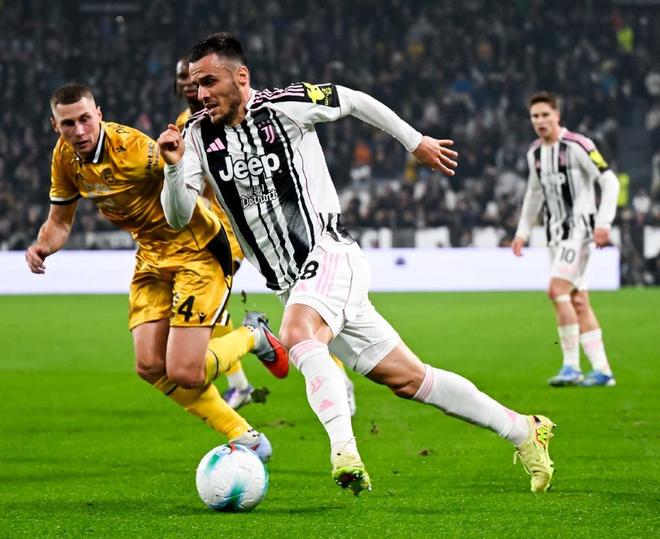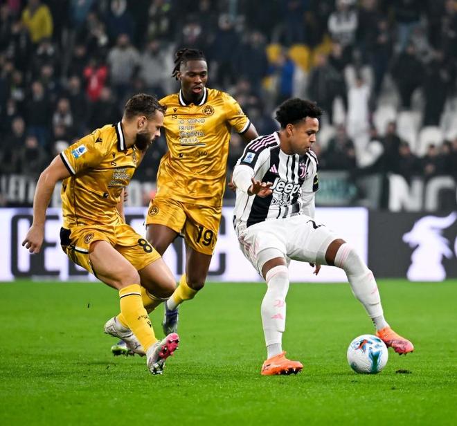 面对上赛季主客场双杀的对手乌迪内斯,尤文此役在主场没有丝毫保留,在3142的阵型中,继续让迪格雷戈里奥镇守龙门,凯利、加蒂和卡卢卢构筑后防,洛卡特利出任单后腰,科斯蒂奇、伊尔迪兹、麦肯尼和坎比亚索坐镇中场,双箭头则是弗拉霍维奇搭档奥蓬达。